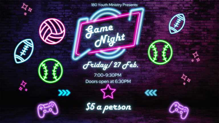 180 Youth Game night for both Middle and High School at 7pm at KCC!